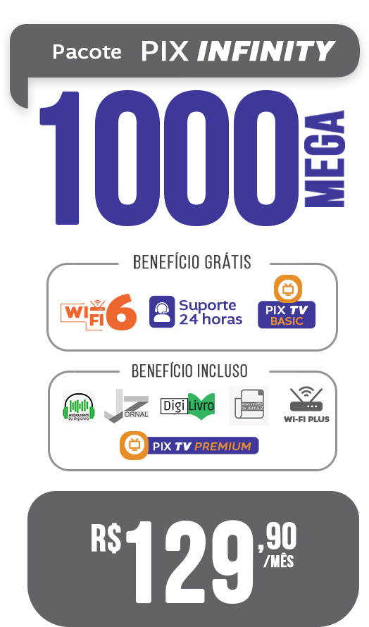 A PixFibra é um provedor de internet que tem como missão oferecer conectividade de alta qualidade com tecnologia de ponta e atendimento próximo ao cliente. Com uma infraestrutura moderna e 100% em fibra óptica, entregamos velocidade real, estabilidade e segurança para residências e empresas.